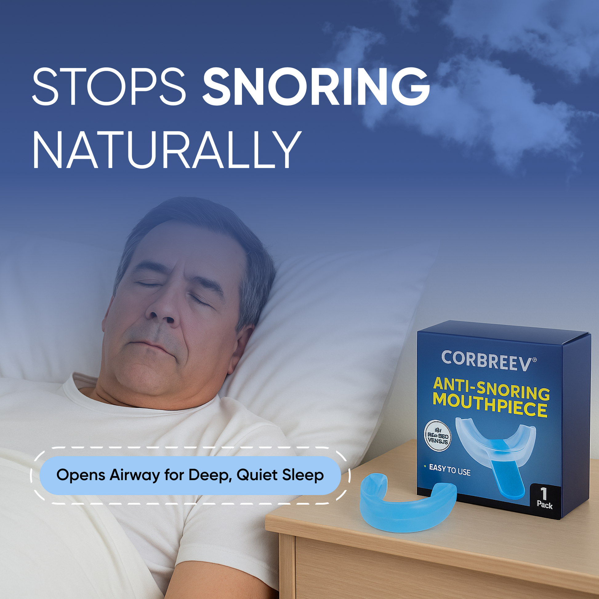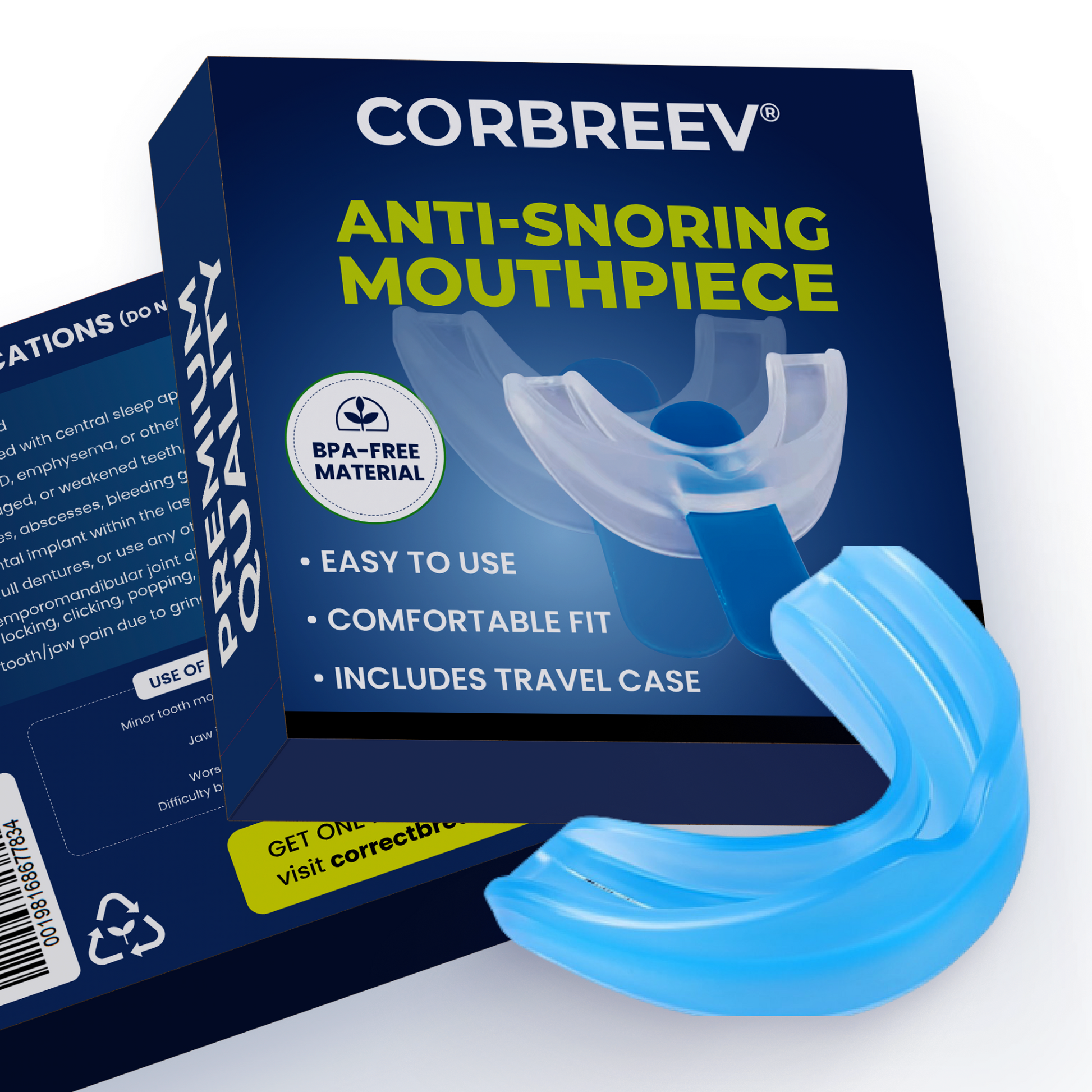 The CorBreev Anti-Snore Device is a customizable, comfortable, and effective solution to stop snoring. Its unique design advances your lower jaw to keep your airway open, allowing free mouth movement for a more restful sleep. Featuring custom-moldable trays for upper and lower teeth, adjustable bars, and a travel case, backed by a 90-day satisfaction guarantee. With easy at-home molding instructions, the CorBreev Anti-Snore Device provides a safe and innovative way to improve your sleep quality and reduce snoring.