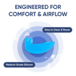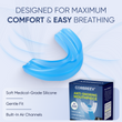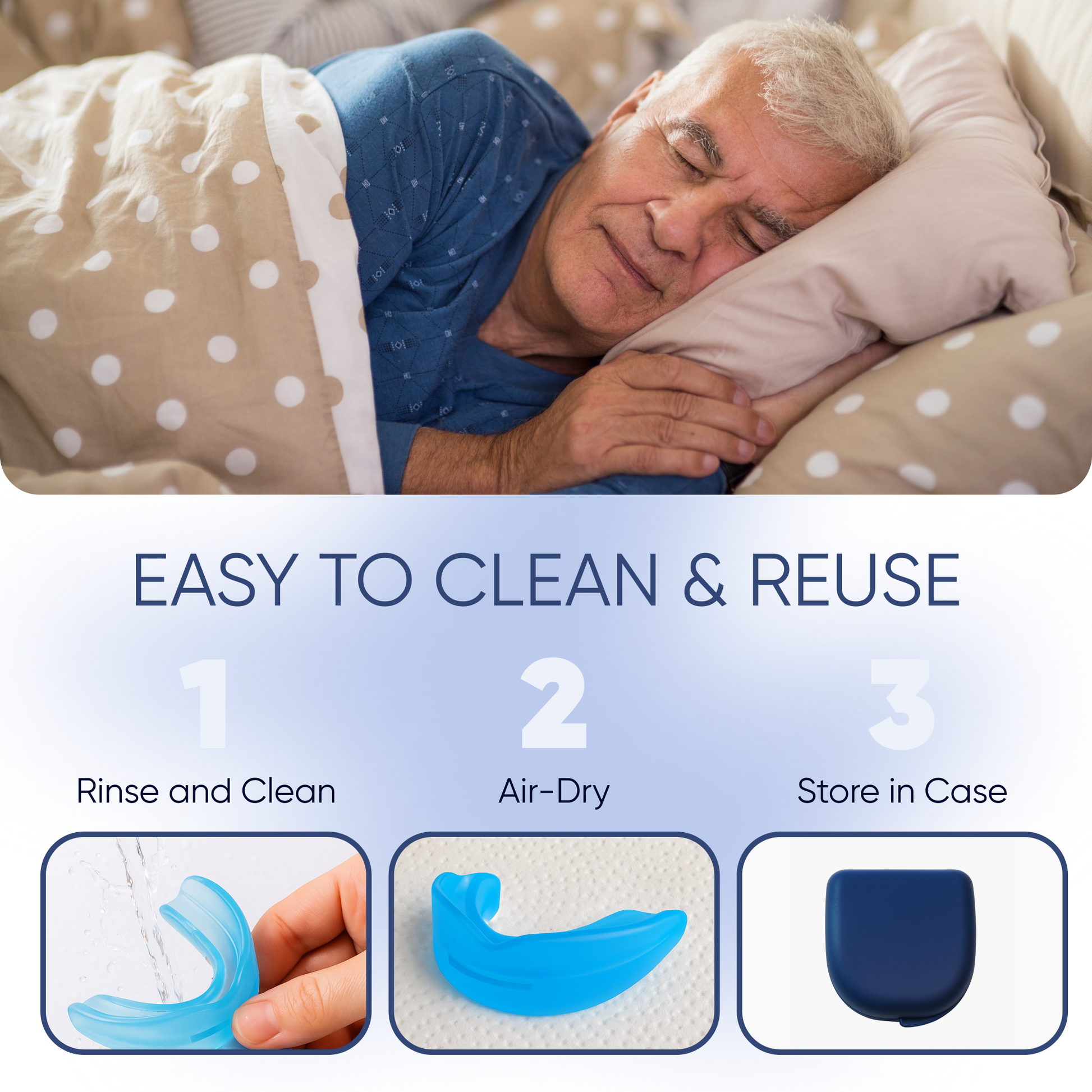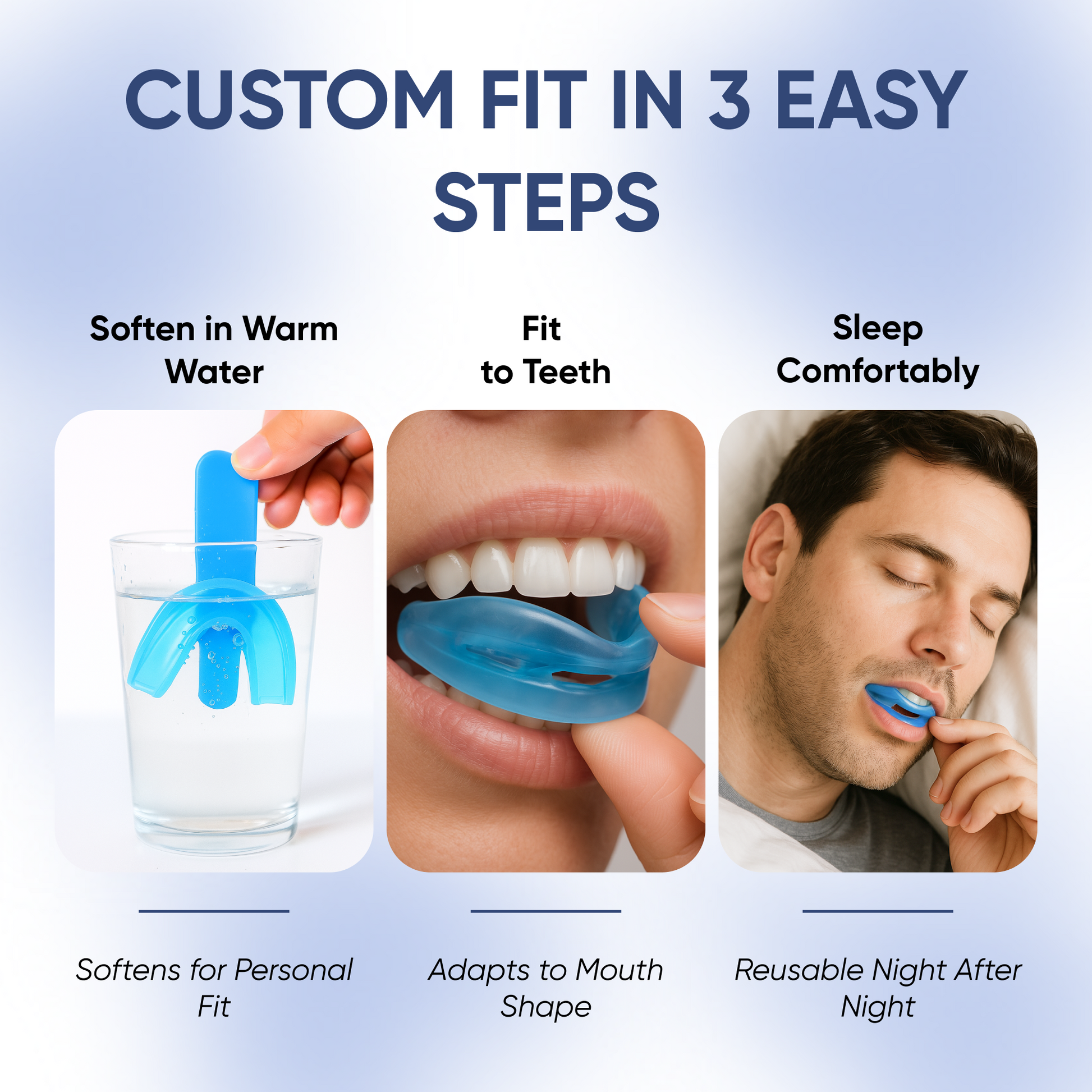 • Customizable, one-size-fits-all design for both men and women that allows for free jaw movement and comfort while sleeping.